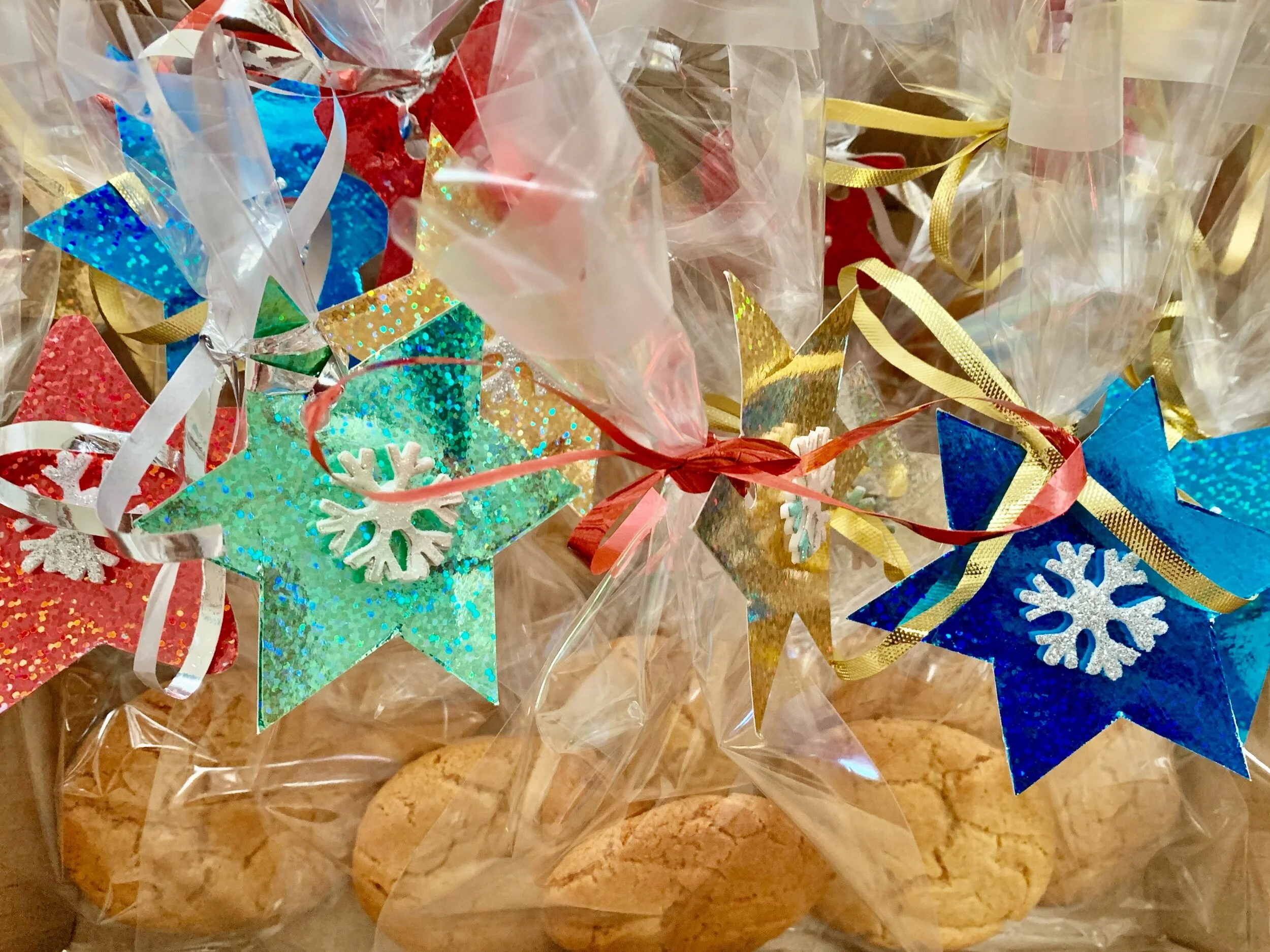 Ginger biscuits wrapped ready to give away.